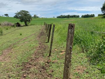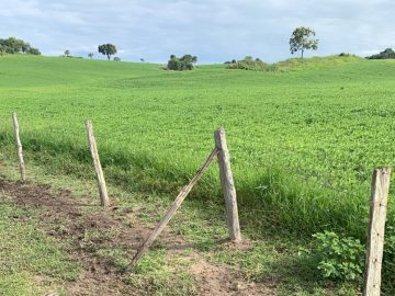- Um aterro de passagem e represa pequena - 03 divisões de pasto com cerca boa arame liso, capim braquiara e colonhão, 01 casa de cocho em madeira e telha plan
